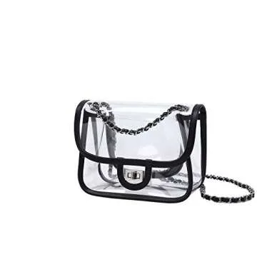 LAM GALLERY Womens PVC Clear Purse Handbag with Chain Stadium Approved Clear Bag See Through Bag for Working and Concert (Black Silver Small)