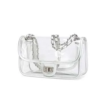 LAM GALLERY Womens PVC Clear Purse Handbag with Chain Stadium Approved Clear Bag See Through Bag for Working and Concert (Silver Silver Large)