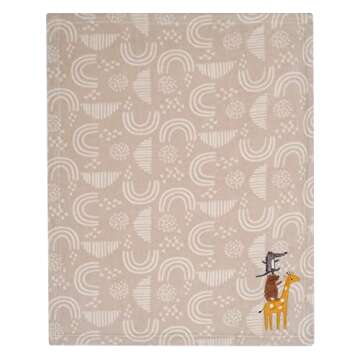 Lambs & Ivy Baby Noah Bear/Giraffe/Alligator Appliqued Taupe Fleece Baby Blanket