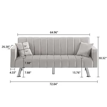 Show moreIntroducing the Lamerge Futon Sofa Bed, a stunning addition to your living space that combines elegance with functionality. With its exquisite Classic Piano Key Design, this sleeper sofa transforms your room with a touch of style. Upholstered in soft, premium velvet fabric, it offers not only a luxurious look but also an extraordinarily comfortable seating experience. The sofa is lightweight and easy to assemble, making it a perfect match for anyone seeking convenient, chic furniture that suits small living areas.