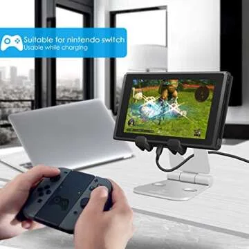 Lamicall Adjustable Phone Tablet Stand, Playstand for Switch, Foldable Desk Holder, Compatible with iPad Mini, 9.7'' iPad Pro Air, Phone 12 Mini 11 Pro Xs Xs Max Xr X 8 7 6 6s Plus SE- Silver 4-10''