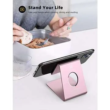 When compared to other phone stands in the market, the Lamicall Cell Phone Stand stands out due to its unique blend of style, stability, and compatibility. Many competitors may offer similar functionalities, but often fall short in material quality or aesthetic appeal. The durable aluminum alloy and the chic Rose Gold finish give this stand an edge, making it not just a utility but a piece of decor for any environment.