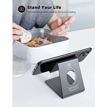 Why You Will Love This Product:The Lamicall Cell Phone Stand does more than hold your phone – it enhances your lifestyle. It keeps your device at eye level, making it easier to engage with your favorite content without straining your neck. Experience the convenience of having your phone accessible and at the perfect angle for interaction during video calls or streaming your favorite shows. Say goodbye to clutter and hello to sleek organization with a product that truly makes your life easier.