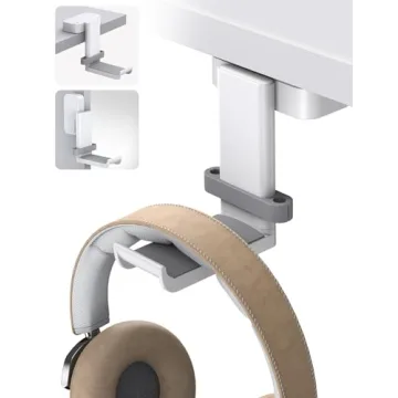 Show moreIntroducing the ultimate solution for headphone organization, the 360 Degree Rotation Headphone Hanger by Lamicall! Engineered for convenience and style, this innovative accessory is designed to enable users to elegantly hang their headphones in a safe and easily accessible manner. With dual 360-degree rotation arms, this hanger can be positioned under your desk, under a shelf, or on the side of your cabinet, effortlessly adapting to your space while complementing your desk's aesthetic.