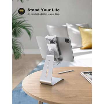 While many tablet stands claim versatility, the Lamicall Tablet Stand distinguishes itself with its impressive rotational capabilities and rock-solid build quality. Many competitors use inferior materials that compromise stability and user experience. Unlike basic models, the ergonomic design of Lamicall not only improves posture but also offers unique features like cable organization, which most alternatives lack. You'll find that the combination of features, ergonomics, and aesthetic appeal makes the Lamicall stand a superior choice.