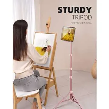 Show more Introducing the Lamicall Tablet Stand, Tripod Holder—your ultimate solution for hands-free viewing whether you’re at home, at a concert, or anywhere else! Designed for convenience and flexibility, this 68-inch height-adjustable floor mount transforms the way you interact with your tablet or smartphone. Experience comfort while binge-watching your favorite shows, cooking with recipes on hand, or video calling friends and family. The stand's sleek rose gold finish offers a stylish touch that complements any setting. It’s not just about aesthetics; the thoughtful design ensures that you can easily adjust your device to the perfect height and angle with minimal effort.