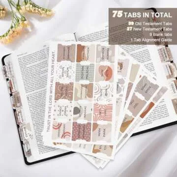 Laminated Bible Tabs for Women & Men - Large Print Tabs for Study Bibles, Boho Theme for Easy Navigation and Quick Reference - Easy-to-Read and Apply Tabs for All Ages