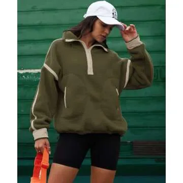 LAMISSCHE Half Zip Sweatshirt Women Oversized Sherpa Jacket V Neck Fleece Pullover Hoodie with Pockets(Army Green,M)