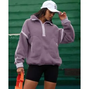 LAMISSCHE Half Zip Sweatshirt Women Oversized Sherpa Jacket V Neck Fleece Pullover Hoodie with Pockets(Light Purple,M)