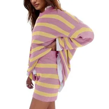 Show more Introducing the LAMISSCHE Women's Oversized Lounge Sets, the perfect blend of style and comfort in a chic two-piece outfit. This cozy loungewear set features a beautifully designed long-sleeve sweater and matching shorts, crafted from soft, warm knit fabric that feels delightful against your skin. Whether you're lounging at home or running errands, this outfit is designed for those who appreciate both comfort and fashion. Available in a trendy yellow and pink stripe combo, it not only promises coziness but also elevates your loungewear game to a new level.
