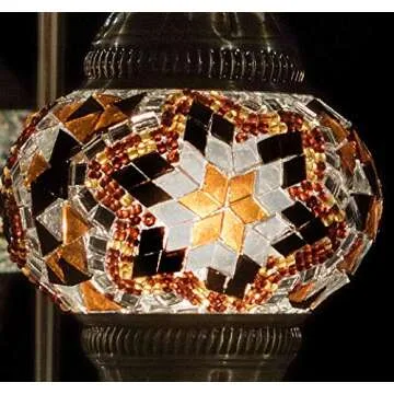 LaModaHome Turkish Lamp Colorful Mosaic Glass Decorative Moroccan Lamp for Living Room, Bedside Table Lamp, with US Plug & Socket - Medium 4.7" Globe (LED Bulb Included)