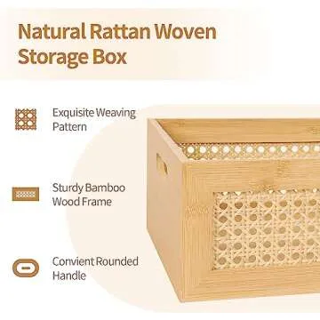 Show moreIntroducing the **LaMorée Large Rattan Storage Basket**, a beautifully crafted storage solution that blends functionality and style. Measuring 14” x 10” x 5”, this basket offers ample space for storing towels, toilet paper, books, crafts, snacks, makeup products, and various sundries. What sets this basket apart is its exquisite handcrafted design made by skilled artisans using high-quality premium bamboo strips and robust wood material. Each basket features a stunning hexagonal weaving pattern that captures the essence of boho decor, making it a fantastic addition to any room in your home or office.