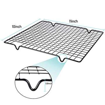 Show moreIntroducing the Lamoutor 2Pcs Metal Kitchen Baking Cooling Rack — a must-have kitchen essential designed for versatile cooking and baking tasks! Made from heavy-weight metal wire with a non-stick coating, this cooling rack offers an exceptional balance of durability and functionality. Say goodbye to rust and hello to reliability in your kitchen adventures. Each rack measures 10 x 11 inches, providing ample space for cakes, cookies, meats, and more, while the striking black color adds a modern touch to your kitchen decor. Perfect for both professional chefs and home cooks alike, the Lamoutor cooling rack will elevate your culinary creations to new heights.