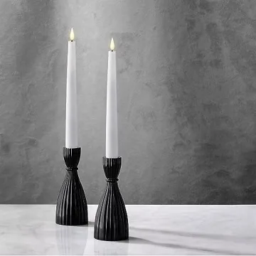 Show moreTransform your space with the elegant LampLust Black Taper Candle Holder set, a perfect blend of style and functionality. These chic candlestick holders feature a stunning glossy black finish and a modern hourglass shape that effortlessly enhances any decor. Crafted from a single piece of heavyweight black glass, they offer a seamless appearance that radiates quality and sophistication. With dimensions of 2.5" D by 6" H, these holders perfectly complement standard tapered candles (candle size of 0.75" Diameter), whether traditional or flameless. Ideal for tablescapes, this set brings a touch of Victorian-inspired charm to your home, making them a timeless addition to your furnishings.