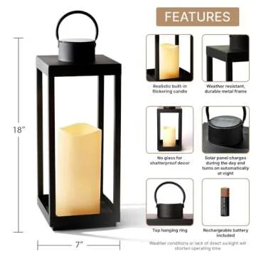 LampLust Solar Lantern Decorative Front Porch Decor, 18 Inch Solar Lanterns Outdoor Waterproof, Modern Home Decor Porch Decorations Outdoor, Candle Lantern for Farmhouse Patio