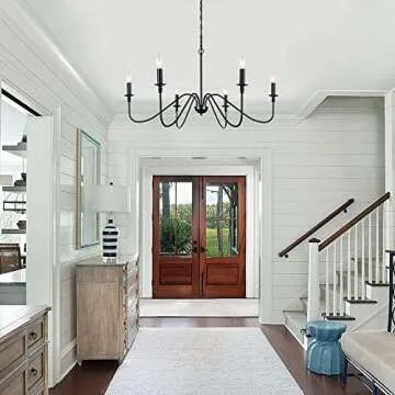 The chandelier’s industrial and rustic charm makes it perfect for farmhouse, modern, and eclectic decor styles.