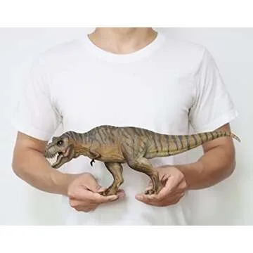 Featuring a striking length of approximately 17.1 inches (43.5 cm), this meticulously detailed Tyrannosaurus Rex showcases intricate sculpting that emblemizes the ferocity and majesty of this prehistoric creature. Each piece is carefully finished to ensure it's a captivating addition to any collection. Packaged in its original box, it comes complete with a doll figure and a collector's card, making it ideal for display purposes or a memorable gift.