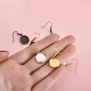 LANBEIDE 12mm Earring Wire Hooks with Glass Cover Cabochon Setting, 84 Pcs 7 Colors Alloy Earring Bezel Trays for Jewelry Making
