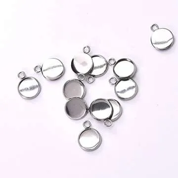 LANBEIDE Stainless Steel Bezel Pendant Trays Cabochon Settings Trays Pendant Blanks 10x10mm 50Pcs