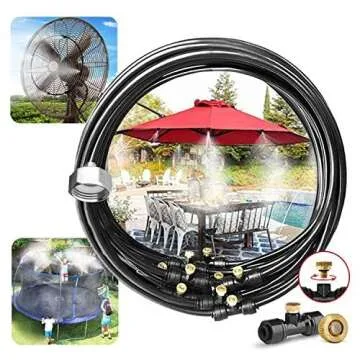 Landgarden Outdoor Misting Cooling System,33ft Misting Line,11 Brass Mist Nozzles for Patio Garden Greenhouse