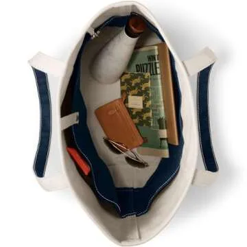 Show moreIntroducing the Lands' End Natural Long Handle Open Top Canvas Tote, a quintessential accessory designed to enhance your everyday adventures. Crafted from 100% cotton canvas, this tote embodies durability and style, making it a reliable companion for work, play, and everything in between. Available in a soothing Natural/Radiant Navy color scheme, this tote not only reflects your sophisticated taste but also offers a practical solution to your carrying needs. Its spacious 13.5"W x 5.5"D x 9"H size is perfect for transporting books, gym clothes, picnic supplies, or even your shopping finds, ensuring you're always prepared for whatever the day brings. Plus, with its ability to support up to 500 pounds, this tote bag is powerfully constructed for heavy-duty use.