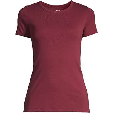 Lands' End Women Short Sleeve Shaped 1x1 Rib Crew Rich Burgundy Regular Small