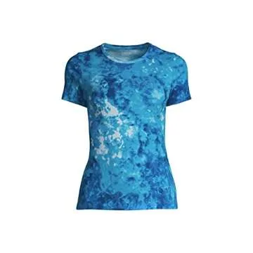 Lands' End Women Short Sleeve Shaped 1x1 Rib Crew Turquoise/Baltic Teal Tie Dye Regular Small
