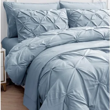 Show more Transform your bedroom into a serene sanctuary with the LANE LINEN Comforters Queen Size, 7 Piece Queen Comforter Set. This exquisite ensemble features a sumptuous down alternative comforter that measures a generous 88"x88" and is complemented by matching sheets and pillow covers, all designed to provide the ultimate sleeping experience. Crafted with exacting attention to detail, this bedding set combines elegance and functionality, merging stunning pinch pleats and geometric patterns that will suit any home décor style. The rich French blue color adds a calming ambiance to your space, making it the perfect haven for relaxation.