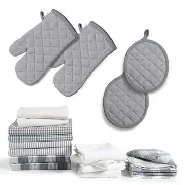 - Heat-Resistant Mitts: With oven mitts and potholders that can withstand temperatures up to 350°F (177°C), safely handle hot pots and pans while keeping your hands protected and stylish.