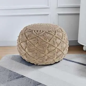 Show moreIntroducing the exquisite Lane Linen Pouf Ottoman, a hand-knitted masterpiece that transforms any space with its chic and stylish design. Crafted with love by expert artisans, this unique pouf is not just a footrest; it serves as a versatile focal point that complements a range of decor styles, from bohemian and Moroccan to contemporary and casual. With its intricate macrame pattern and premium 100% cotton braid cord, this pouf makes a statement while offering the practicality of additional seating or a decorative table for your favorite drinks. Its lightweight nature allows for effortless repositioning, making it the perfect companion for any occasion.
