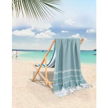 LANE LINEN Turkish Beach Towels, 2 Pack Extra Large Beach Towel, Pre-Washed for Soft Feel, Oversized Sand Free Quick-Dry Pool Towel, Beach Towels for Adults, 39"x71" - Baltic