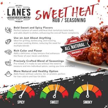 Lane's Sweet Heat Rub Seasoning, All-Natural BBQ Brisket Rub Goes Well with Butt Rub Seasoning, No MSG Brisket Seasoning &, Made in USA, 4.0 Oz