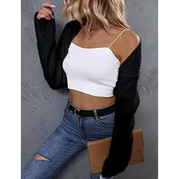LANGEYANG Women's Long Sleeve Open Front Crop Cardigan Knit Shrugs Sweater Drop Shoulder Solid Top