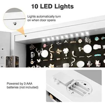 This LANGRIA Jewelry Cabinet Organizer adds a touch of class to your routine, effortlessly blending style and utility. The convenience of having all your jewelry neatly organized, coupled with accessibility and security, transforms your daily choices into an empowering experience. Imagine getting ready each morning with a bright, illuminated view of your outfit and accessories, all organized neatly in one chic location. This cabinet doesn't just store your items; it enhances your lifestyle, empowering you with organization and ease that you will love and appreciate.