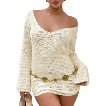 Show moreElevate your summer beach game with the Langwyqu Women's Crochet Cover Up. Made from 100% acrylic, this bathing suit cover up features a beautifully knitted crochet fabric that is not only lightweight and breathable but also incredibly soft against the skin. Whether you're lounging by the pool or soaking up the sun at the beach, this cover up ensures you stay cool and comfortable on even the hottest days. The chic design showcases a hollow-out detail, a flattering V neck, and a sexy backless style, making it a must-have addition to your swimwear collection.