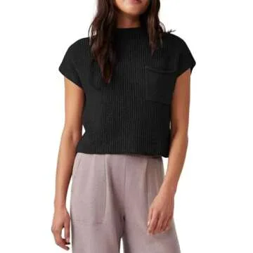 Show more Introducing the Langwyqu Women’s Sleeveless Knit Sweater Vest, a versatile and chic addition to your wardrobe that seamlessly blends style with comfort. Crafted from high-quality, soft knit fabric, this casual mock neck tank top features cap sleeves and a solid vintage design that effortlessly elevates any outfit. The exquisite black color is perfect for any occasion, making it a staple piece for your collection. With its practical pocket detail, you can keep your essentials close at hand while maintaining a fashionable look.