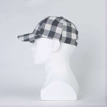 LANGZHEN Plaid Print Adjustable Baseball Cap Soft Cotton Blend Checked Print Outdoor Hat Cap for Men Women(Grid Lightgrey+White)