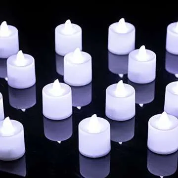 LANKER 24 Pack Flameless Led Tea Lights Candles, Steady Cool White Battery Operated Electronic Fake Candles, Decorations for Christmas, Halloween and Festival Celebration (White)