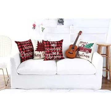 Lanpn Christmas 20x20 Throw Pillow Covers, Decorative Outdoor Farmhouse Buffalo Plaid Plad Merry Christmas Xmas Pillow Shams Cases Slipcovers Cover Set of 4 Couch Sofa