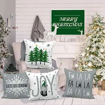 Lanpn Grey Christmas Throw Pillow Covers 22x22 Set of 4, Decorative 22 inch Gray Modern Winter Snowflake Xmas Cushion Covers Pillow Cases for Home Farmhouse Bedroom Room Holiday Couch Decor Decoration