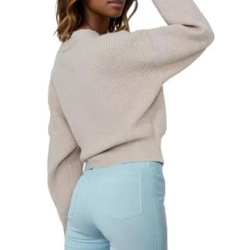 LANSALIRO Women's Casual V Neck Wrap Sweater - Lightweight Cozy Knit Tops in Beige