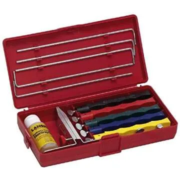 Show moreElevate your sharpening game with the Lansky Deluxe 5-Stone Sharpening System. This meticulously designed set comes equipped with five precision ceramic hones that each serve a unique purpose for maintaining and restoring your blade's edge. Featuring a diverse range of grits, including extra coarse (70 grit) for re-profiling the bevel, coarse (120 grit) for edge reconditioning, medium (280 grit) for sharpening and routine touch-ups, and fine (600 grit) for the most frequent touch-ups, this system offers a comprehensive solution for knife enthusiasts and professionals alike. With a sturdy base and user-friendly angle guide, achieving a razor-sharp blade has never been easier or more efficient, making it a must-have tool in every kitchen, workshop, or outdoor setup.