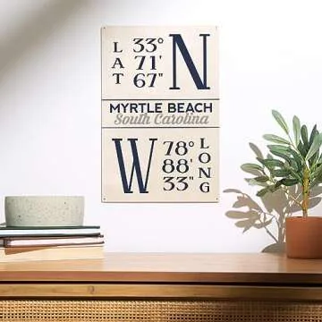 Lantern Press 10x15 Inch Wood Sign, Ready to Hang Wall Decor, Myrtle Beach, South Carolina, Latitude and Longitude (Blue)