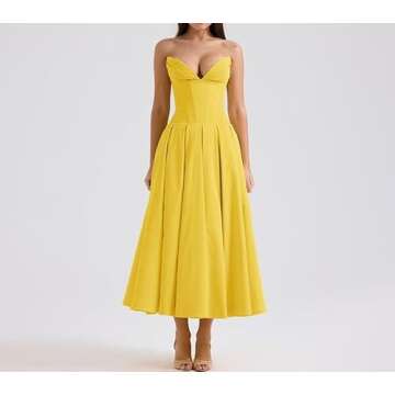 LANZHENYS Women's Sexy Strapless Long Dress, Fashionable Pointed Fishbone Waist, A-List Dress (2,L,Large,Regular,Regular)