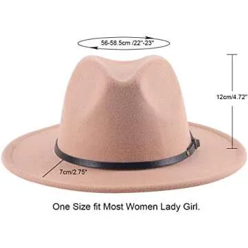 Lanzom Women Lady Retro Wide Brim Floppy Panama Hat Belt Buckle Wool Fedora Hat Fit Size 6 8/7-7 1/4 (Camel, One Size)