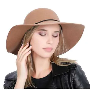 Show more Discover the exquisite charm of our elegant floppy hat, crafted from a high-quality blend of 95% wool and 5% polyester. This hat is not just a fashion statement; it's a symbol of comfort and versatility. Designed to bring out the feminine flair, it features a simple yet stylish belt buckle detail, making it perfect for every occasion. The hat is designed with a circumference of 22.5 inches, ensuring a comfortable fit for most women.