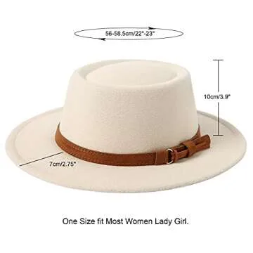 Lanzom Women Vintage Wide Brim Warm Wool Fedora Hat Belt Panama Hat Felt Jazz Hat (B-Beige, Medium)