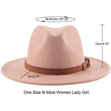 Lanzom Womens Classic Wide Brim Floppy Panama Hat Belt Buckle Wool Fedora Hat (One Size, Z Buckle Belt-Camel)