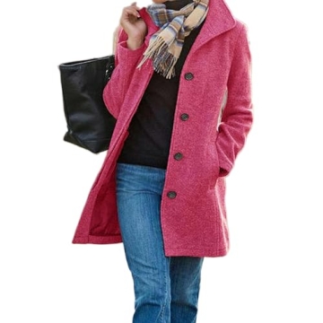LAOMIT Women’s Single Breasted Thicken Fleece Blend Pea Coat Lapel Long Sleeve Solid Casual Mid Long Trench Coat with Pockets