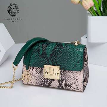 Show more Introducing the LAORENTOU Cowhide Shoulder Bag—a perfect blend of style and functionality designed for the contemporary woman. Crafted from soft, comfortable split cow leather, this exquisite bag stands out with its elegant snake green hue and luxurious gold hardware. The supple material not only adds a touch of sophistication but also ensures durability and a refined look that enhances any outfit. Considering its compact size, this crossbody bag offers an ingenious design that maximizes storage while maintaining a chic silhouette, making it an ideal accessory for various occasions.
